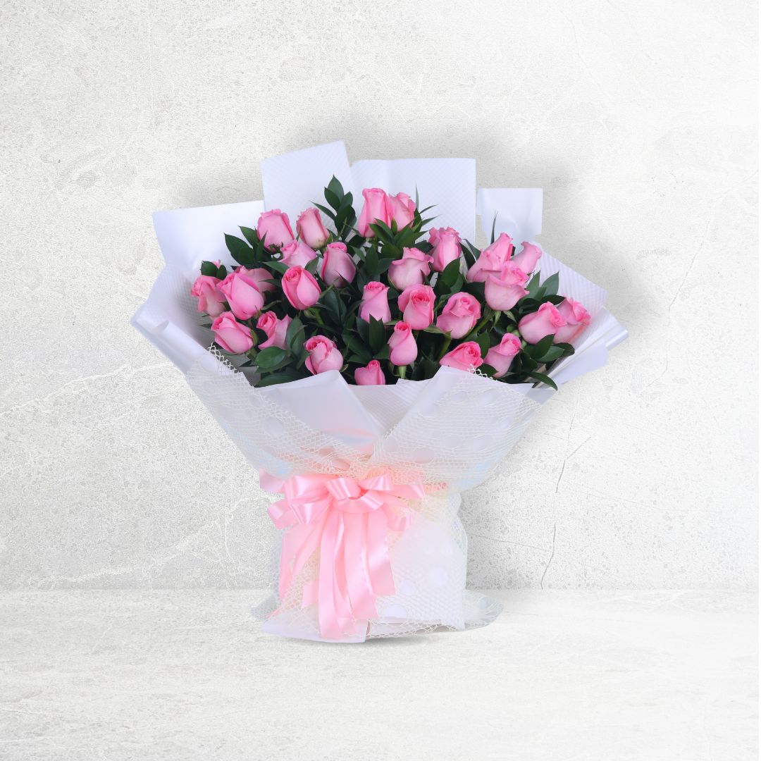 Simple, elegant, and full of affection — Pink Promise features 36 soft Pink Roses nestled in fresh green leaves. Each bloom speaks of admiration, tenderness, and sweet intentions, making it the perfect gesture for birthdays, thank yous, or just to brighten someone’s day with a touch of gentle love.