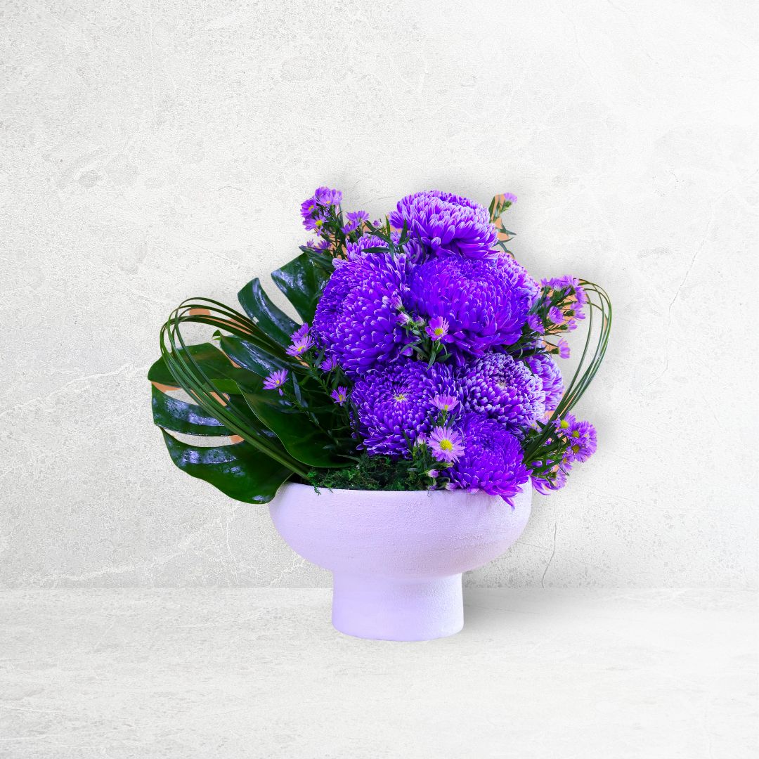 A captivating arrangement of rich violet-toned flowers, symbolizing elegance, creativity, and charm, perfect for adding a touch of sophistication to any occasion.