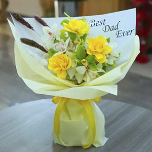 Adding personal touches to the gift for a meaningful impact: You could tailor the arrangement to reflect Dad’s hobbies or interests – for example, if he loves gardening, you could include some potted plants or succulents alongside the flowers.