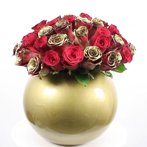 Red and Gold Roses Arrangement