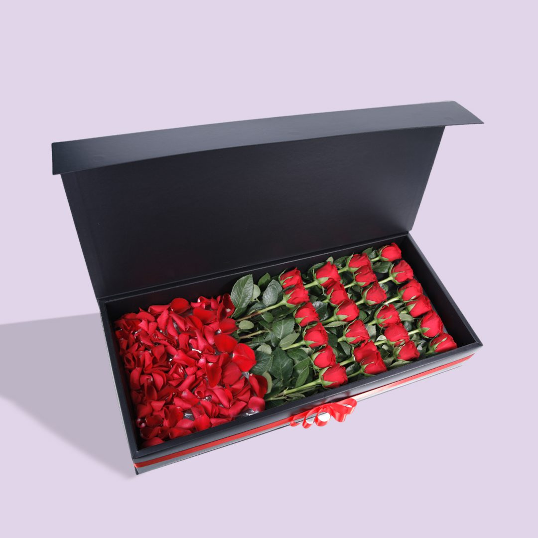 Get romanticized with a complete romantic gift box combined of Red Roses & Red Rose Petals.