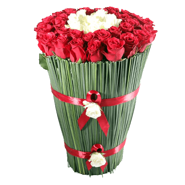 Combination of Red Roses, White Rose, Steel Grass.